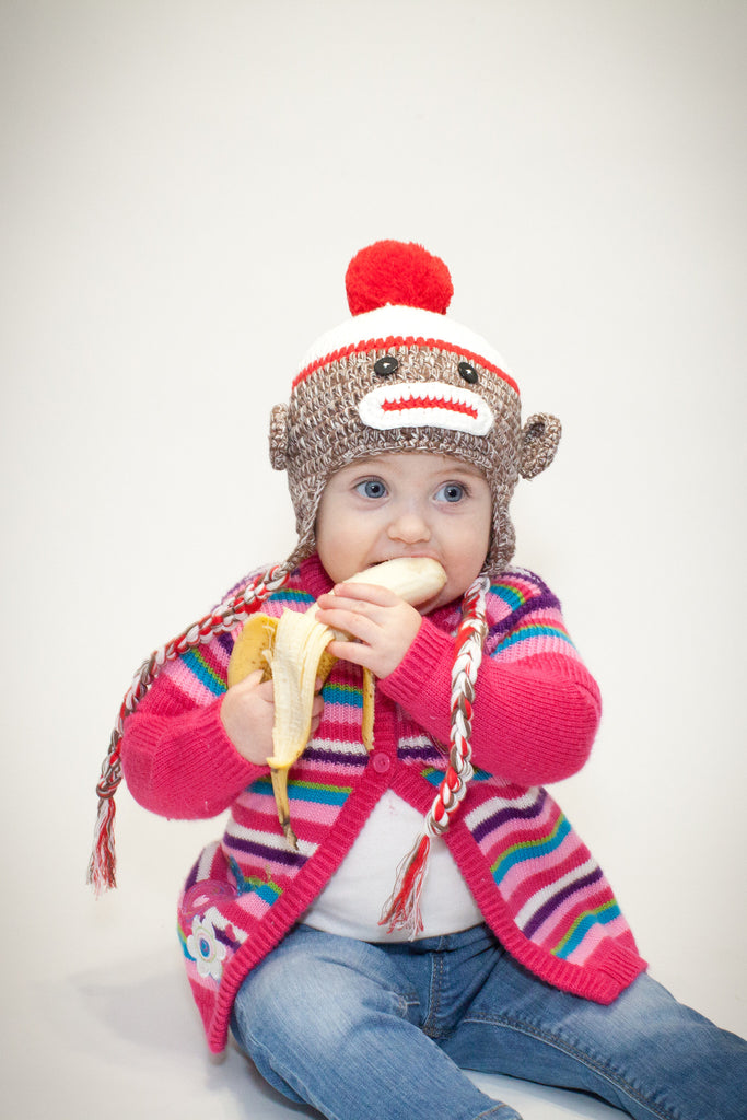 You kid will go bananas over this warm and cuddly sock monkey hat!